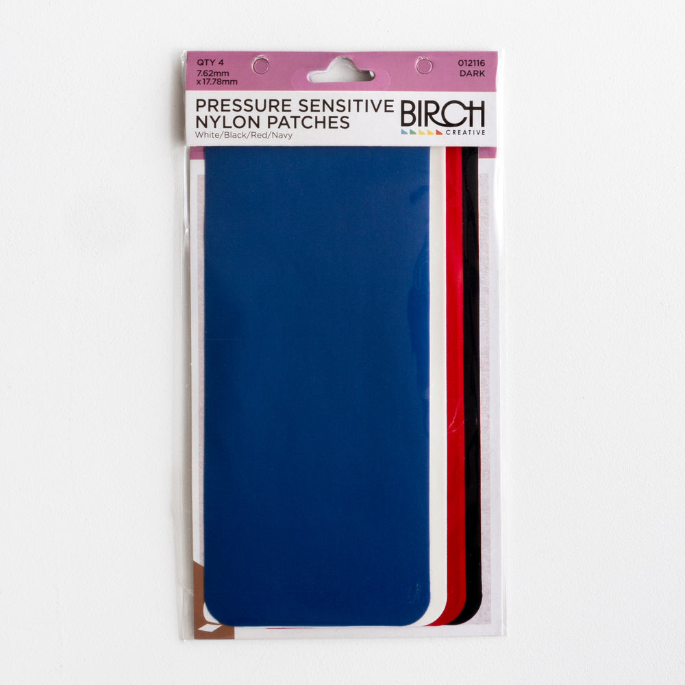 Each pack contains four patches: one of each in white, black, red and blue, measuring 17.78 x 7.62mm. (The packaging says ‘navy’ but it’s definitely closer to royal blue, not navy.)