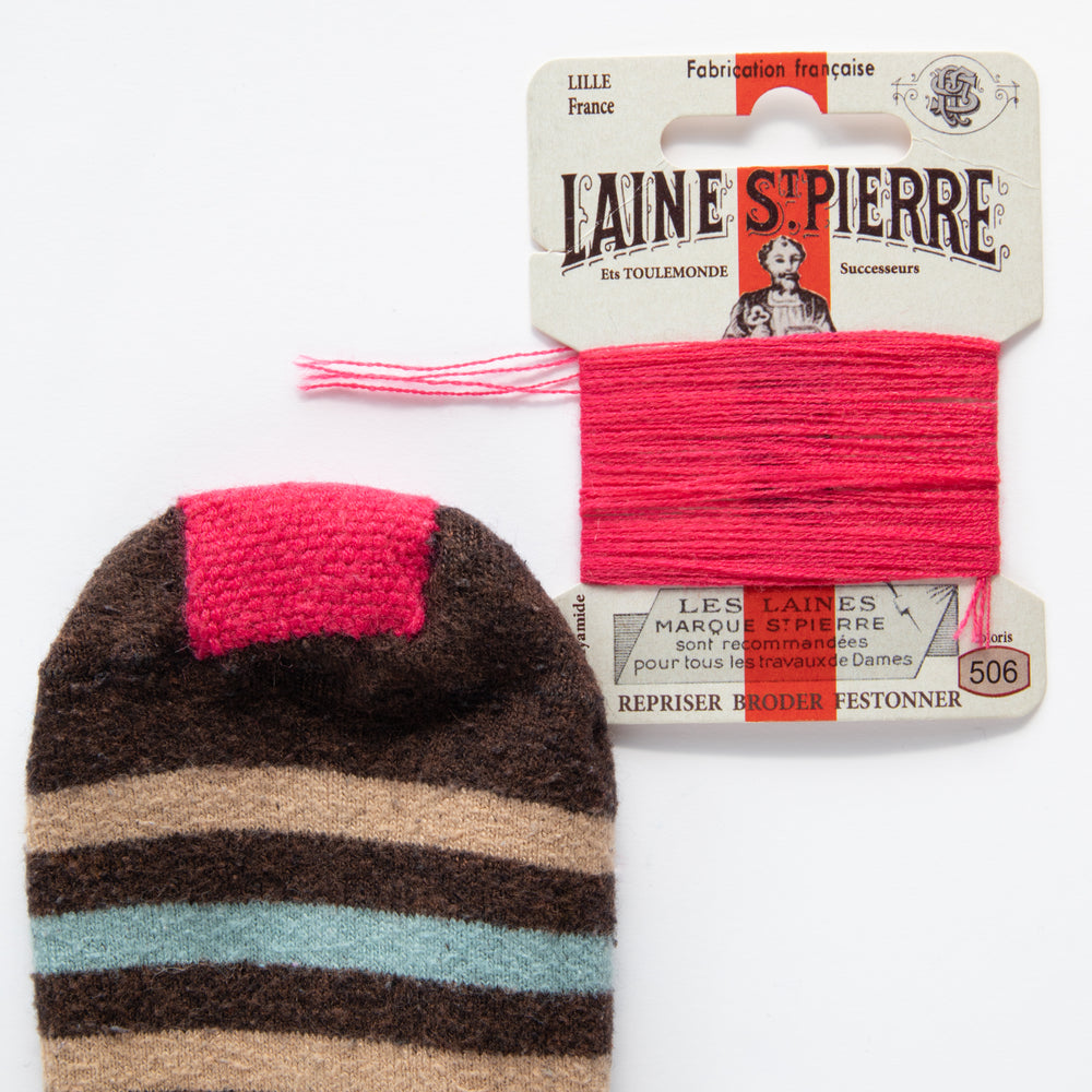 Laine Saint-Pierre mending wool from Sajou in France is lovely stuff - ideal for darning socks and other thin to medium-weight knitwear, and for embroidery.