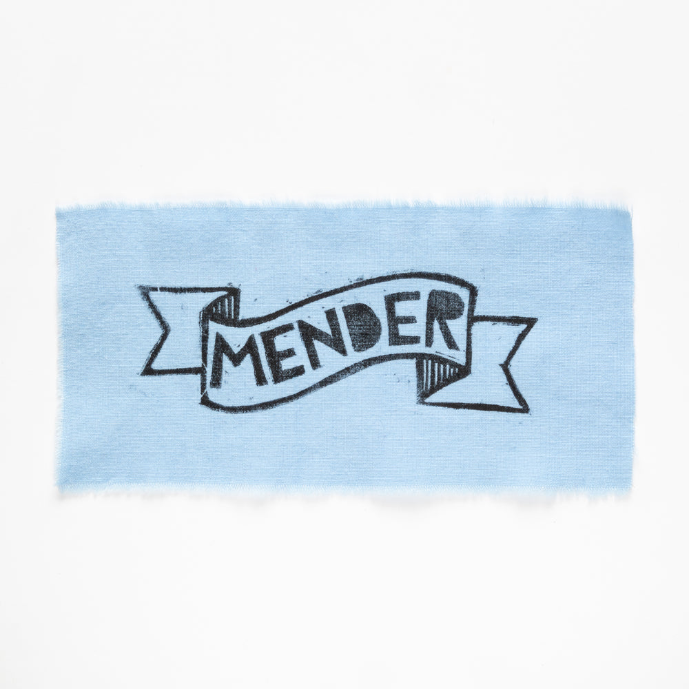 These limited-edition, handmade MENDER patches are blockprinted onto cotton and poly-cotton fabric scraps (upcycled bedsheets) by Addie Best in Maine, U.S.A. Each patch is one-of-a-kind.