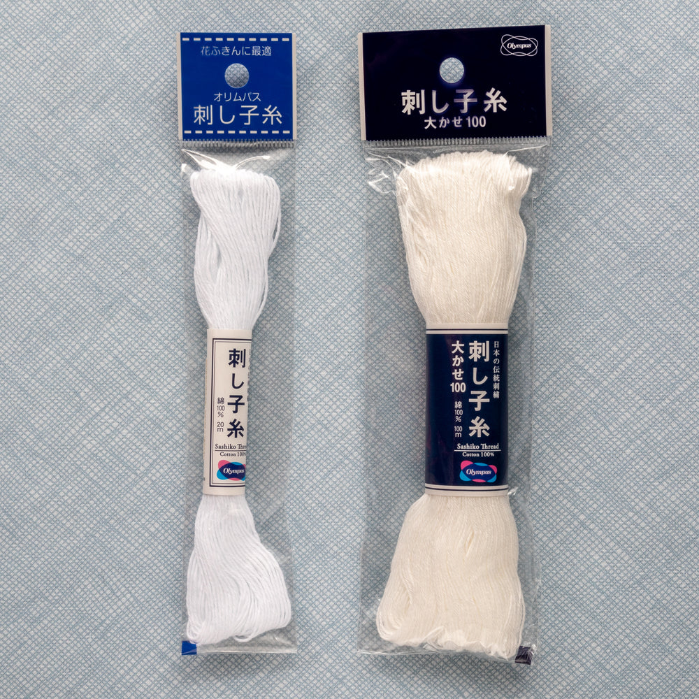 Sashiko thread, used in Japanese sashiko embroidery, is a strong, smooth, cotton thread that’s perfect for mending denim and cotton. The strands are twisted together and not meant to be separated.