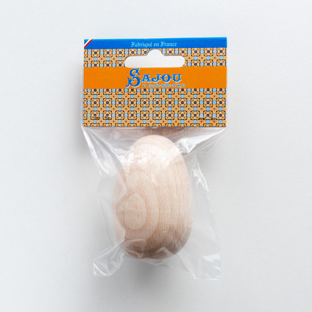 Made of wood by Sajou in France, home of best-selling Laine Saint-Pierre mending wool, each egg is packaged in a clear plastic bag with a cardstock label.