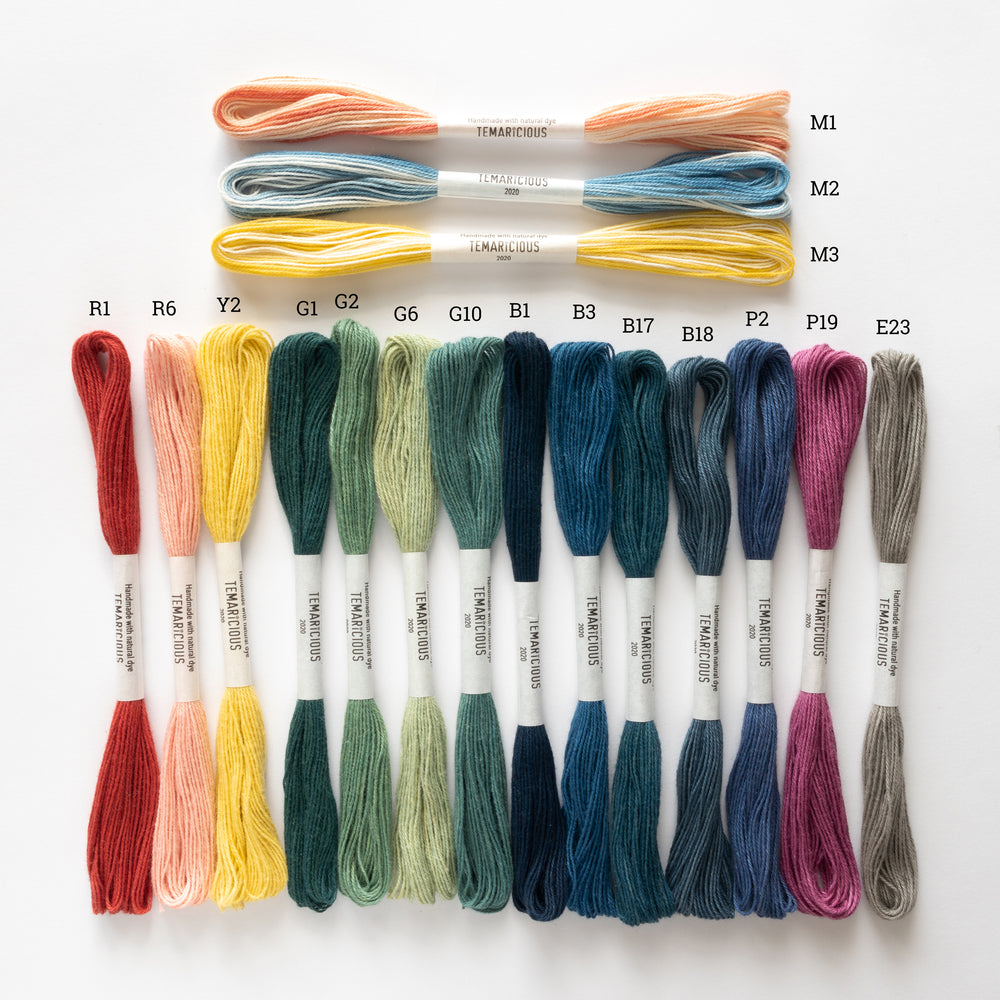 Like sashiko thread, the strands are twisted together and not meant to be separated. Unlike most commercially available sashiko thread, this thread is slightly softer, comes in delicious (or should I say Temaricious?) naturally derived colours and is not packaged in plastic.